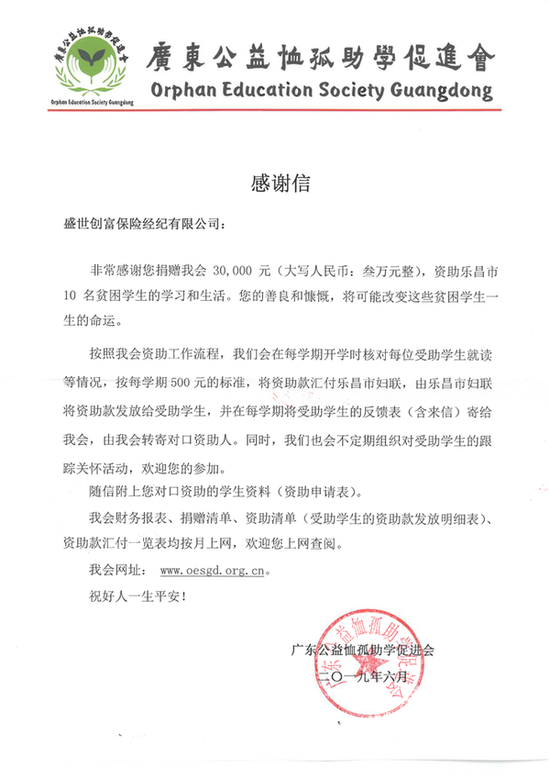 这一天,12354保险网(盛世创富保险经纪有限公司旗下品牌)联系广东公益恤孤助学促进会,向乐昌市长来镇的贫困中小学生提供学习和生活上的经济资助,本次资助款项共计三万元整。